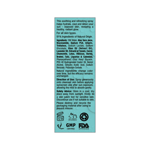 • ☀️ Multi-Benefit Sun Care Mist - Hydrates, refreshes, detans and nourishes skin in one quick spray. Ideal for face & body use before sunscreen and after sun exposure for continuous skin comfort.